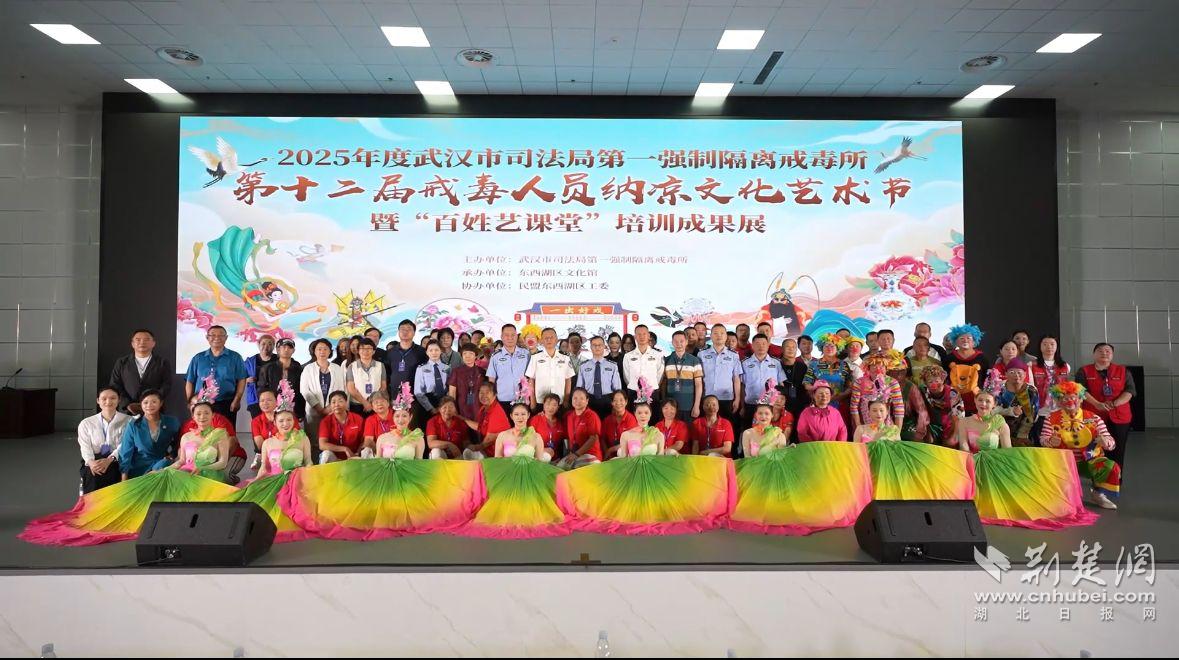 荆楚网(湖北日报网)讯( 通讯员 雷恒)为生动展示法治场所建设成果,彰显戒毒人员积极向上的精神风貌,深化所地共建与社会融合,9月29日,武汉市司法局第一强制隔离戒毒所举办了“第十二届戒毒人员纳凉文化艺术节暨‘百姓艺课堂’培训成果展”。活动邀请了民盟东西湖工委、东西湖文化馆、社区戒毒(康复)指导站、禁毒共建基地学校、戒毒人员家属代表及新闻媒体等各界嘉宾共同见证,开启了一场集教育、艺术、亲情与希望于一体的暖心之旅。