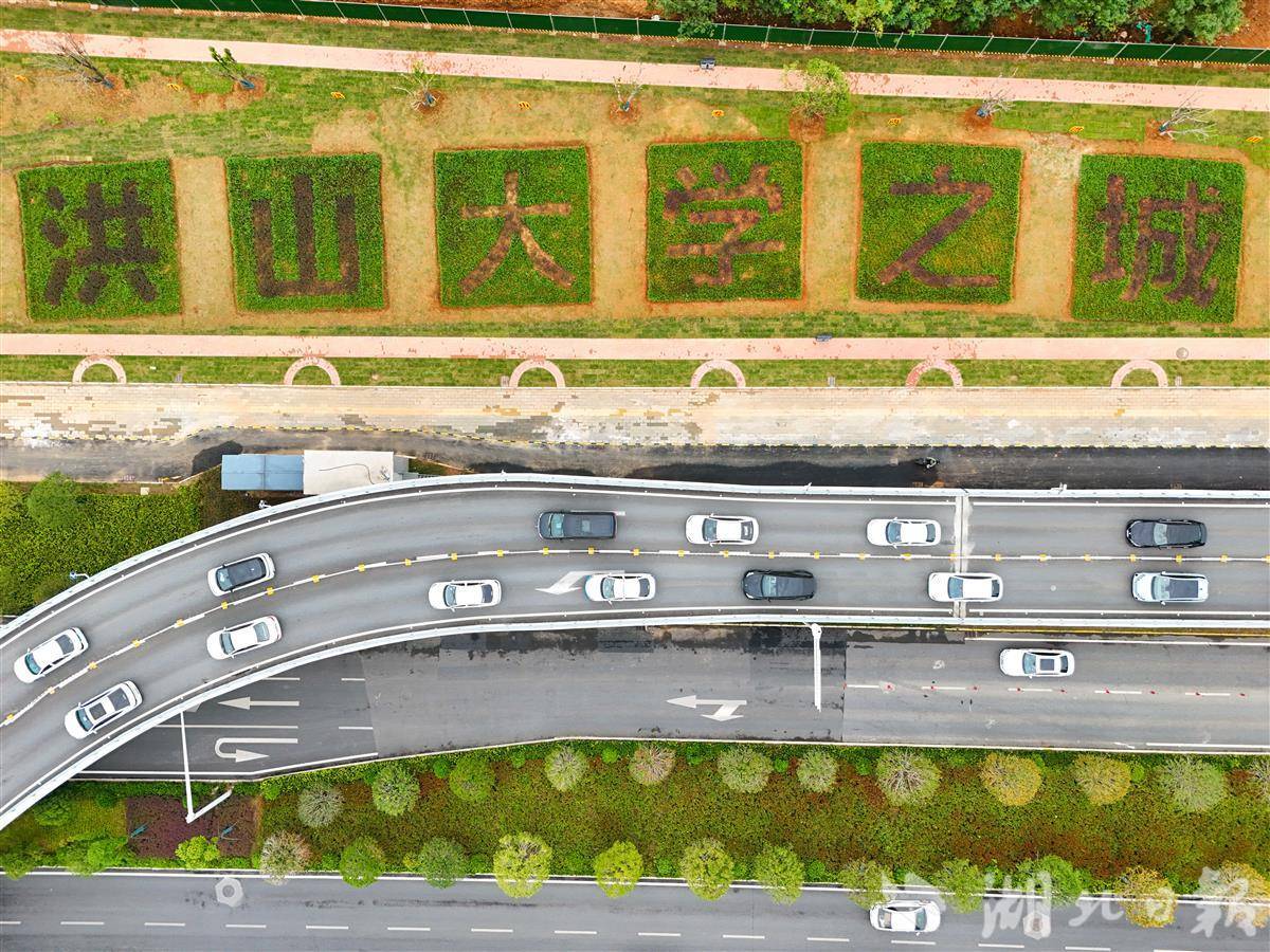 走出武汉站西广场,仅需步行10分钟,就可以解锁这座“爱尚洪山体育游园”。记者现场探访发现,这座沿街展开的长条形公园虽不算大,却“五脏俱全”:西侧配备崭新的智能化健身器材;由红继木、金鸡菊精心构筑的“洪山大学之城”六个大字,宛如立体书法铺展在地面,与设计成动车形状的环形步道形成巧妙呼应;紧邻铁路的红色爱心花环与观景楼梯构成核心打卡区,登梯远眺,不仅能俯瞰园景,更是与“爱心穿列车”同框的绝佳机位。