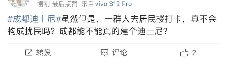 网上流传的多段视频显示,大批年轻人围在成都玉林七巷一居民区楼下的健身器材场,坐在器材上高喊:“我要迪士尼(diss你)。”有网友指出,这是一首说唱歌曲的歌词,歌曲意外走红网络,MV拍摄于武侯区玉林七巷,视频中出现的多个场景也都在玉林七巷附近。