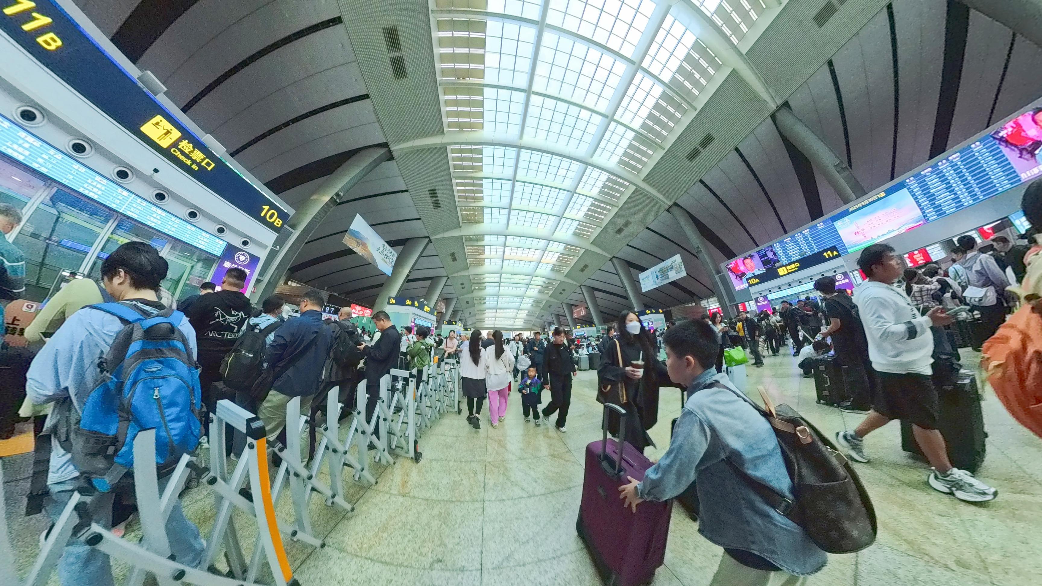 9月30日早上7点北京南站候车的旅客。人民网记者 王天乐摄