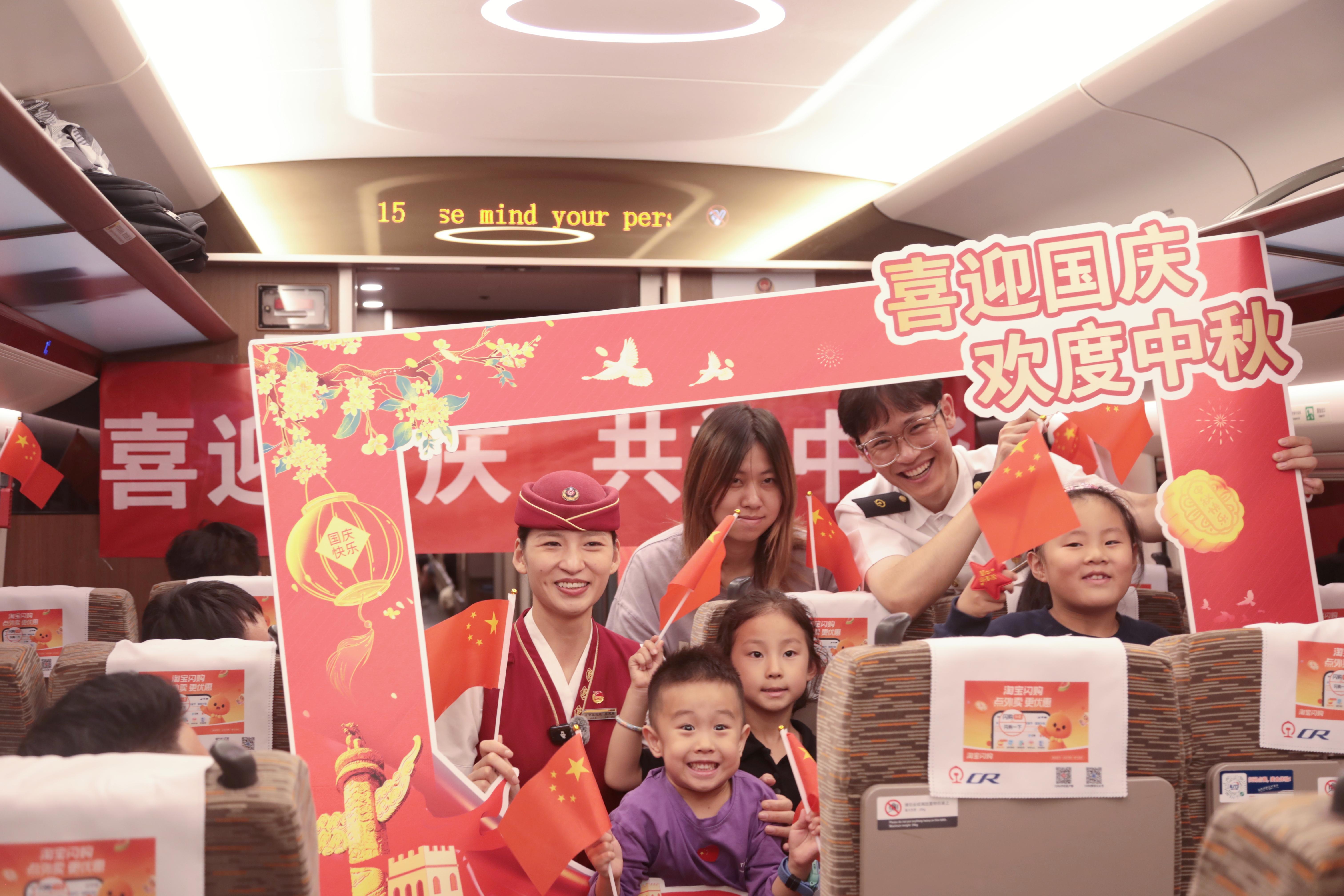 北京客运段京沪高铁二队在列车上开展了“喜迎国庆、共祝中华”主题活动。肖奥摄