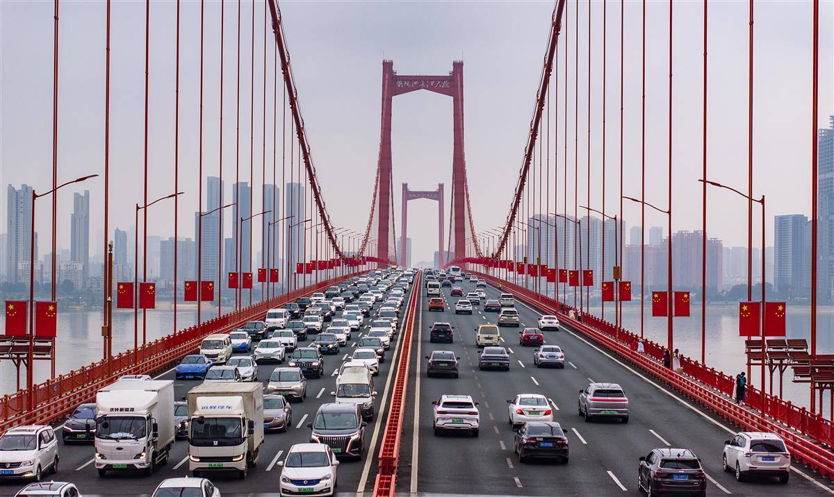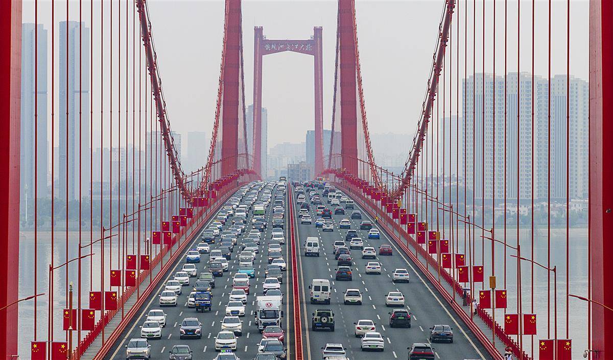 节前车流量激增,鹦鹉洲长江大桥井然有序