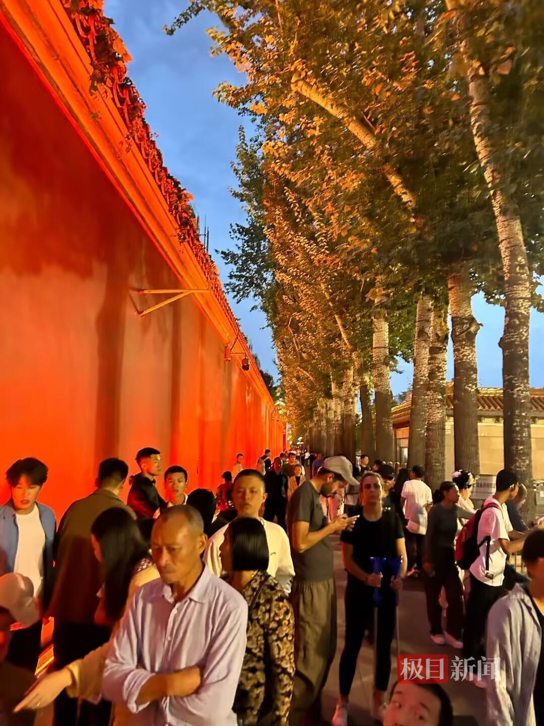 22时,极目新闻记者在天安门广场东侧安检口看到,仍有不少游客陆续进入天安门广场,等待明早的升旗。