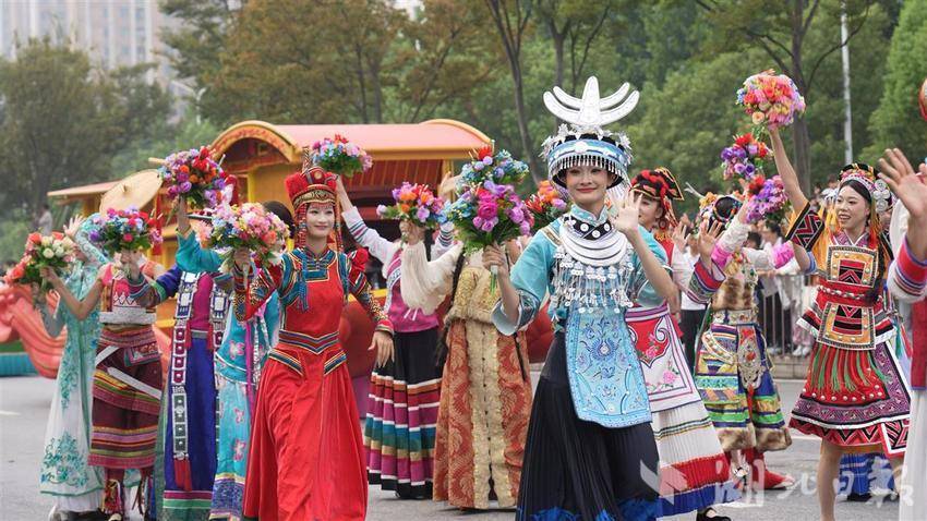 非遗方阵尤为壮观,广东潮汕英歌舞、陕西安塞腰鼓、山南藏戏、新疆《十二木卡姆》等多民族艺术同台演绎。民族服饰秀中,苗族银饰、藏族氆氇、蒙古袍服等首次以动态巡游形式亮相武汉街头,诠释“中华一家亲”的团结图景。