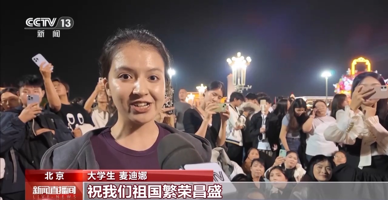 大学生 麦迪娜:等待着国旗同太阳一起升起,我非常激动。祝我们祖国繁荣昌盛,祝新疆越来越好,祝我们各民族越来越好。