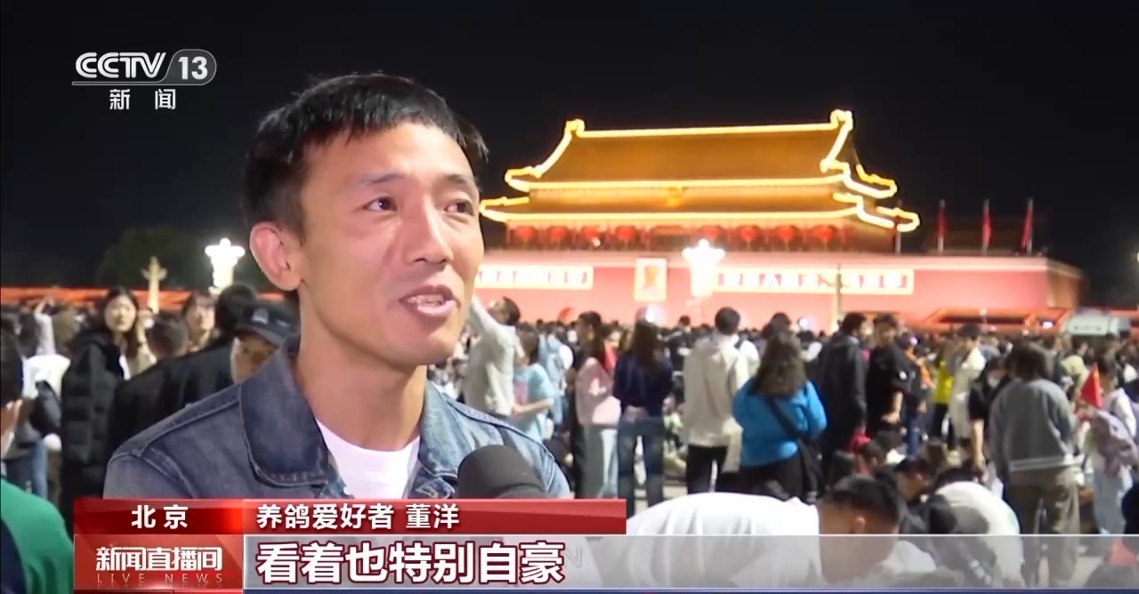 养鸽爱好者 董洋:阅兵的时候没有机会参加活动,但是我的鸽子来了,在天安门上盘旋的时候,看着也特别自豪,那种为祖国强大的自豪,作为中国人的自豪。