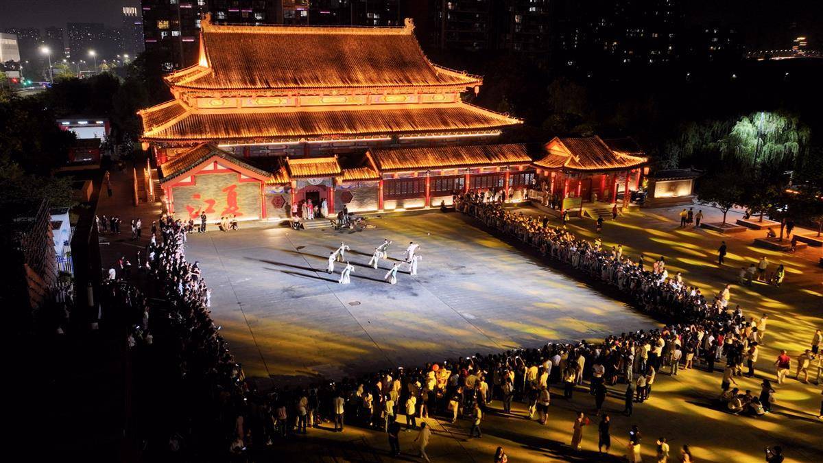 10月1日,武汉市江夏区谭鑫培公园一派节日盛景。美食集市人头攒动,游客们流连于各式摊位前,品尝地道小吃,共享舌尖上的欢愉。