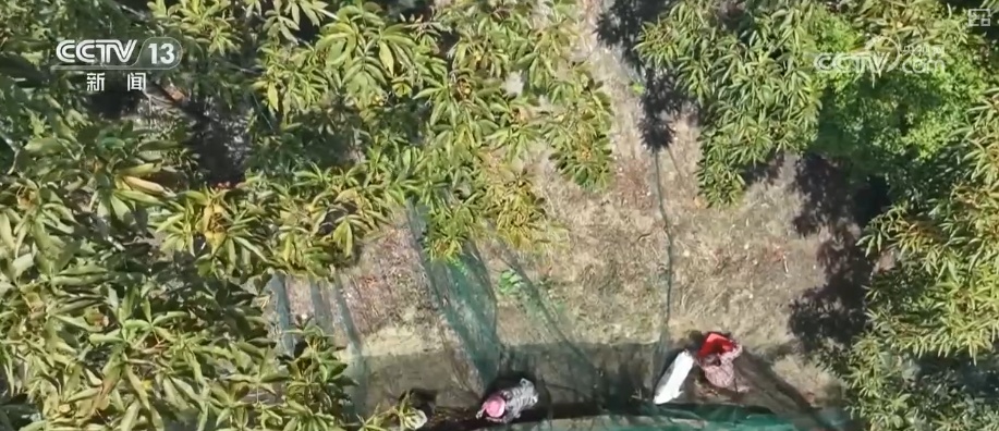 如今,临安区采收山核桃的方式也随着生态治理有了改变。当地大力推广张网采收,在山核桃林铺设采收网,把传统的打杆落果变为山核桃自然脱落收集,收集后的山核桃再通过轨道列车、无人机快速下山。截至目前,全区建成“山核桃+测土配方施肥”、混交林等示范基地100多个,应用张网采收的山核桃林地累计突破10万多亩。