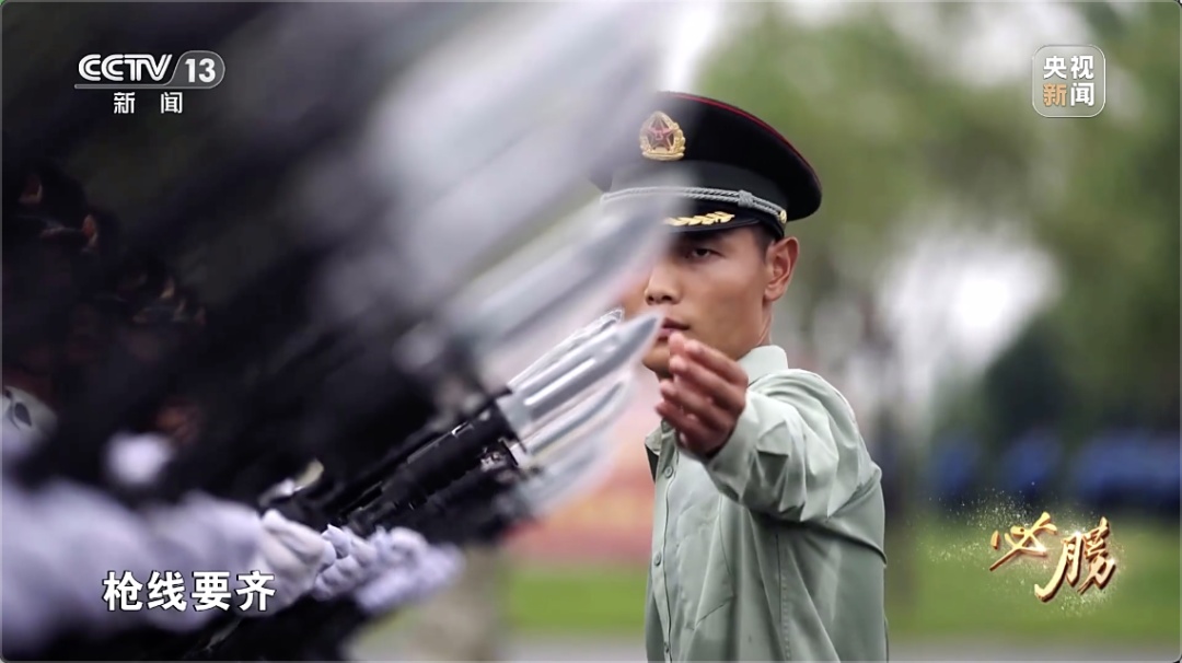 武警部队方队在阅兵集训点一直以严厉刚硬的训练作风著称,劈腿带风、落地砸坑,钢枪铁腿的武警部队方队为受阅动作定义了硬核标准。武警部队方队副方队长张文海介绍,所有的刺刀都是开了刃的,“我们端着枪一百多步出去,前面、后面都有刺刀,一旦松懈就会受伤。”