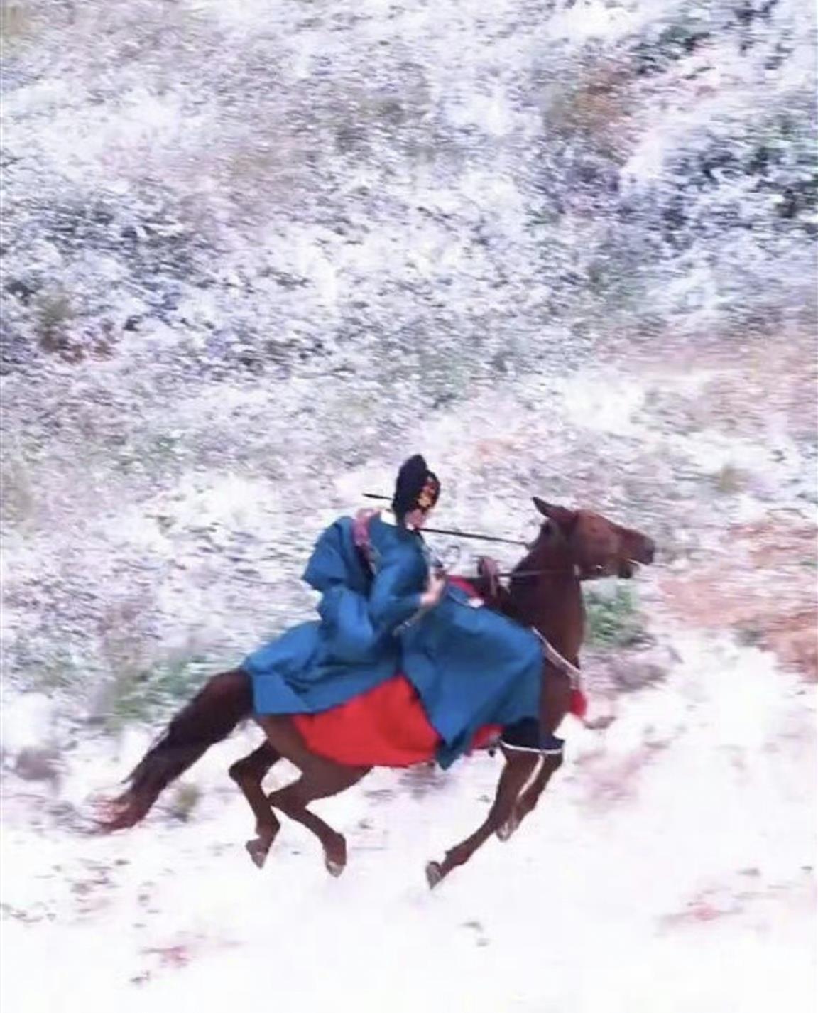 10月1日,丁禹兮在山西拍摄古装剧《花开锦绣》骑马戏时,所乘马匹因不明原因受惊失控。现场视频显示,马匹剧烈颠簸狂奔,丁禹兮紧抓缰绳冷静控马,多次呼喊“吁”尝试稳停,最终凭借马术经验化解险情。