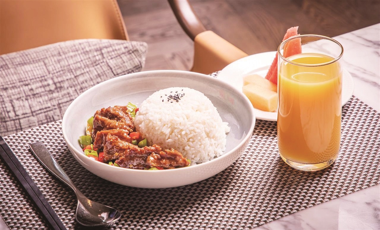 “我们的午市套餐自今年3月起开始推出,分为面条和米饭2种,分别为28元和38元一份。”武汉襄投万豪酒店臻厨全日制餐厅经理张文倩介绍,米饭套餐如小炒黄牛肉、青椒肉丝、土豆肉丝等,还有豉油鸡、叉烧饭等;面条套餐里则有襄阳牛肉面、肥肠面、武汉牛肉热干面等4种主食,每款套餐均提供饮品、例汤和水果。
