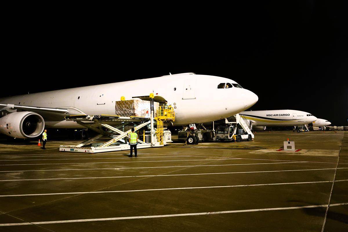 “鄂州—西班牙”国际货运航线正在上货。湖北日报全媒记者周鹏摄