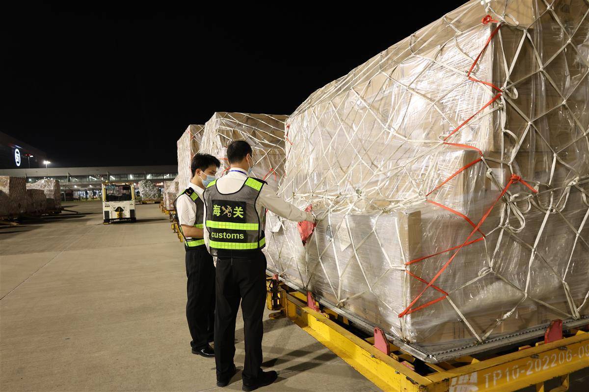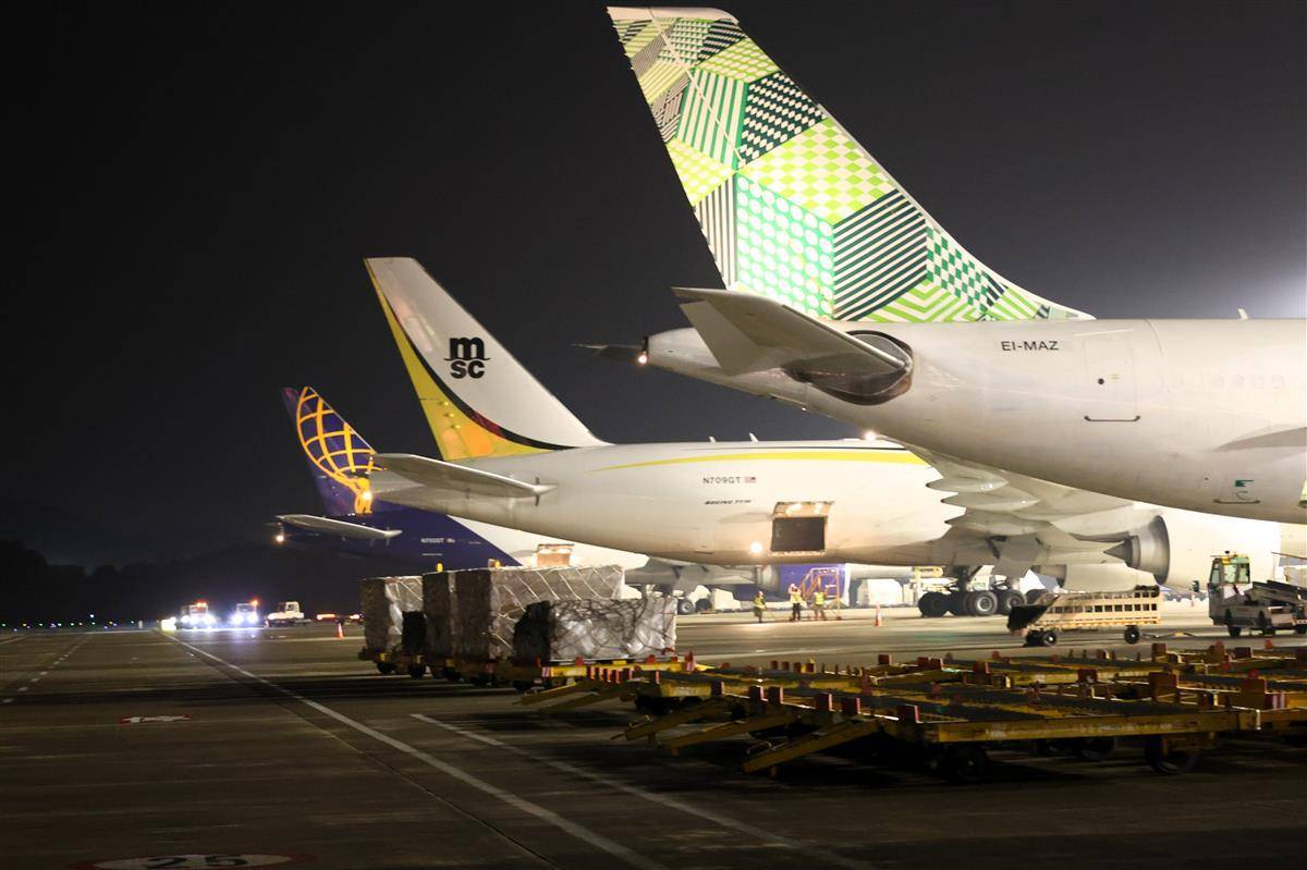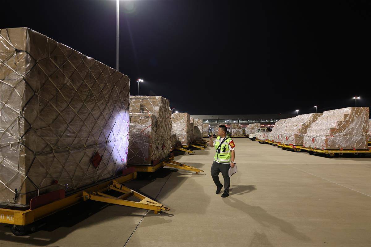10月2日晚,多趟国际货运航班抵达花湖国际机场。湖北日报全媒记者周鹏摄