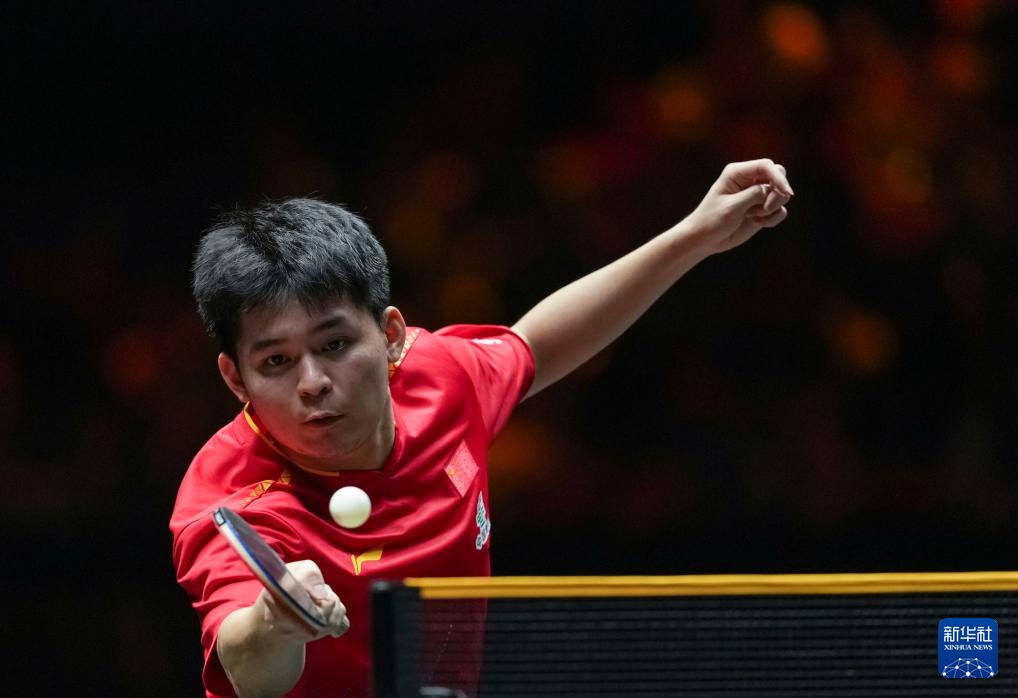 10月2日,林诗栋在比赛中回球。