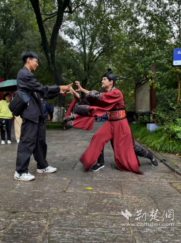 “你敢信,我刚刚和‘刘备’石头剪刀布,完成了绝杀!”来自武汉的小伙冯先生说,在古色古香的古隆中玩剧本游,很有氛围感。