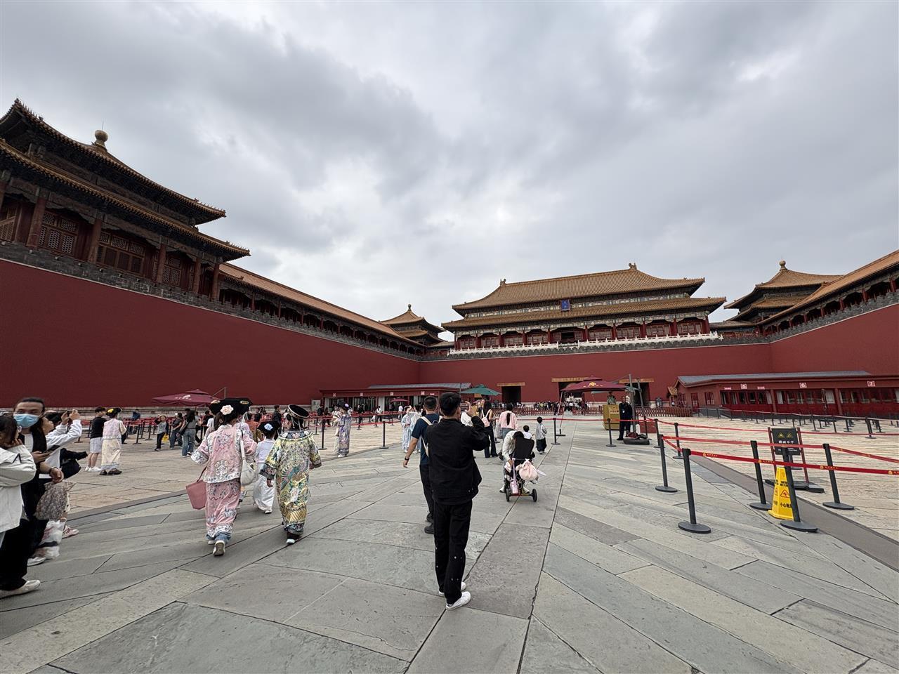记者注意到,一部分没有预约到故宫博物院门票的游客,也选择在午门外拍照留念。一位身着“格格装”的游客告诉记者,她和朋友来自浙江杭州,提前两周就在蹲故宫门票,但一直没能抢到票,最后选择在景山公园俯瞰故宫全景,弥补遗憾。