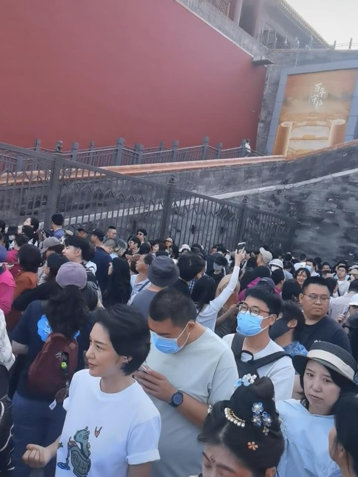 大量游客在午门展厅外排队 来源:视频截图