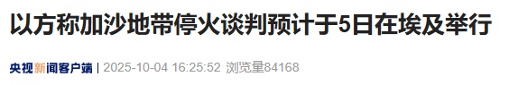 总台记者当地时间4日从以色列方面获悉,目前,加沙地带停火谈判的准备工作正在进行中,谈判预计于5日开始,地点可能是埃及的阿里什。