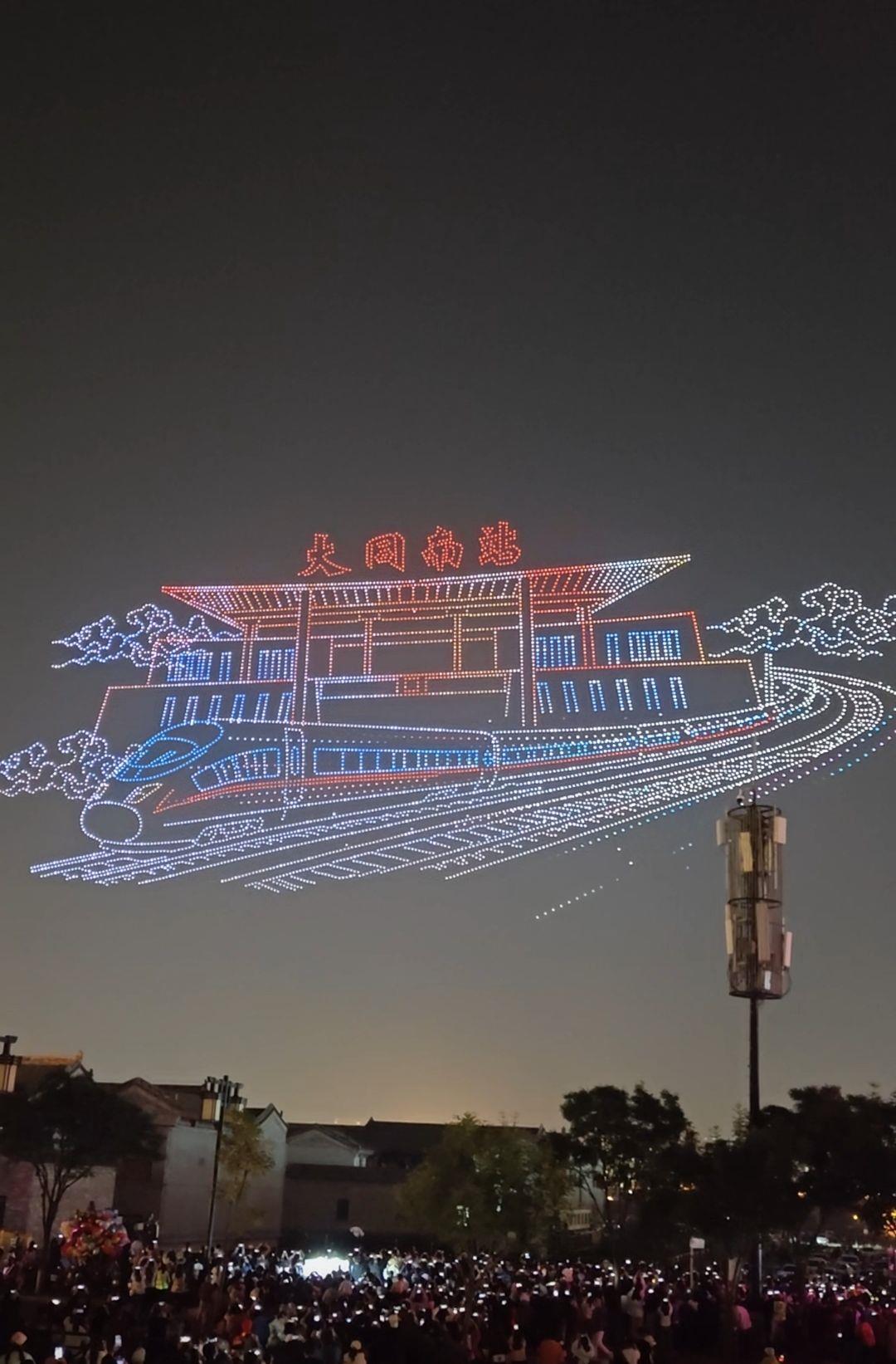 此次无人机灯光秀展演通过灵动光影精准勾勒祖国山河的壮丽风貌与时代发展的辉煌成就,传递对祖国母亲的深情祝福;同时,将大同深厚的历史文化底蕴、秀美的城市夜景与现代化科技元素深度融合,让市民与游客在欢庆国庆的同时,全方位感受大同独特的城市魅力与发展活力。