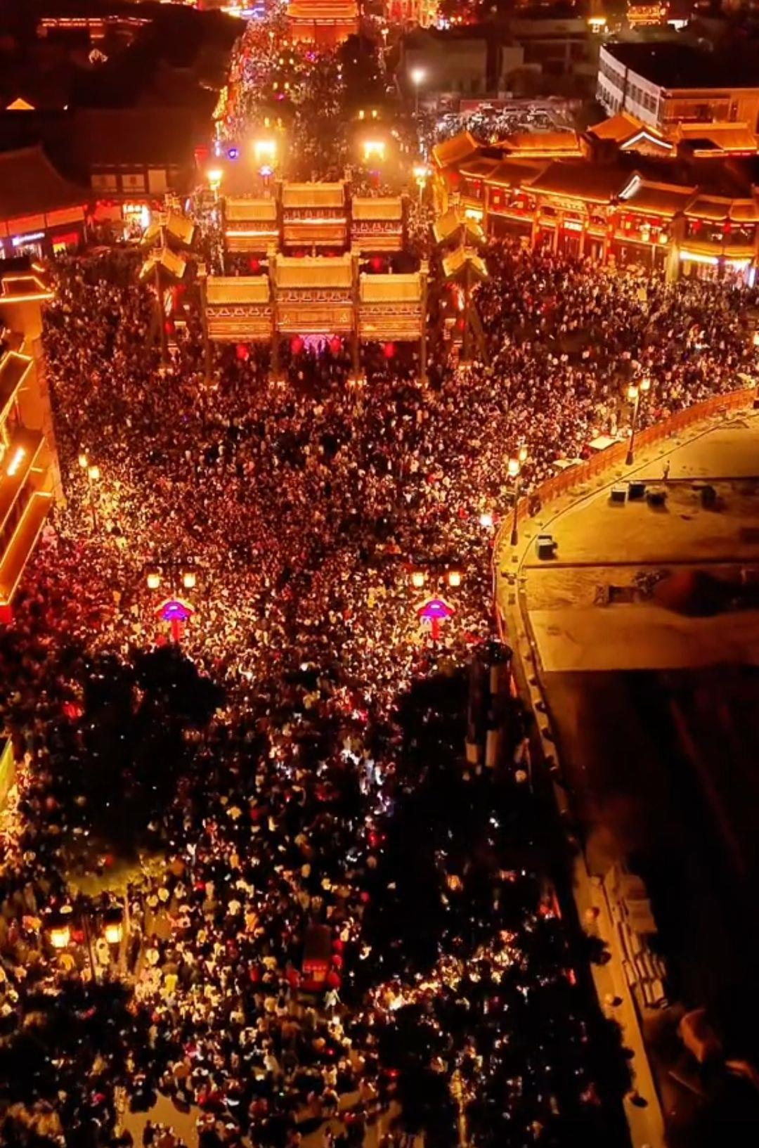 10月4日晚,山西省大同古城代王府景区上空8000架无人机腾空而起,一场以“庆祖国华诞、展大同风采、享国庆欢乐”为主题的科技光影秀拉开帷幕。国庆假期,这座千年古都以“人潮海啸”的姿态刷屏社交平台——有网友晒出视频,称在古城核心区“半小时仅移动百米”,大同古城的游客真是有“亿”点多,在太平楼周边的无人机表演场地,前两小时就座无虚席。