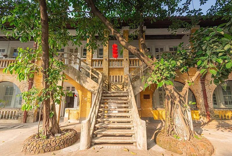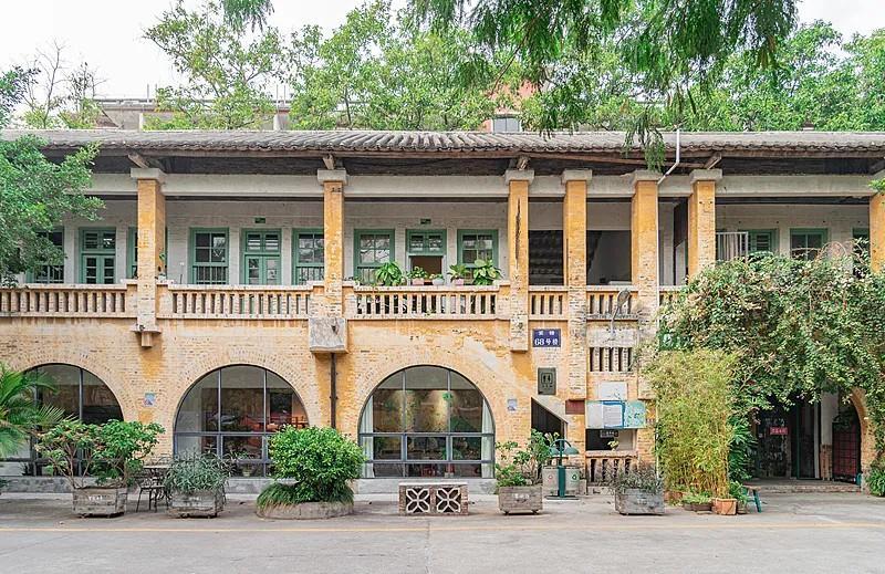 园区内的“Y字”楼梯、黄色墙身与拱券式走廊,构成极具空间感的景观,也让这里成为游客们必到的打卡点。