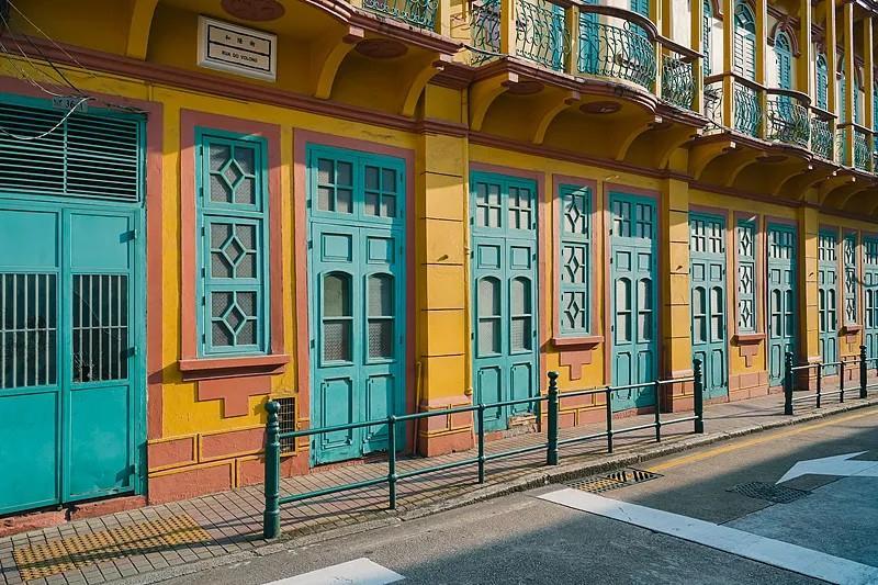 “华洋共处,中西合璧”是澳门的特色。这里周边的建筑五彩缤纷,粉、蓝、黄等多巴胺色调交织在一起,每一个街角都散发着复古气息,随手一拍便自带电影感。