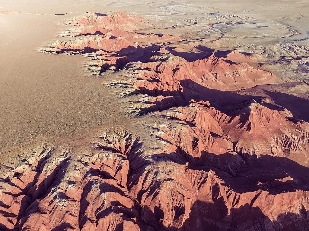影片的取景地中,乌兰察布的红崖台地尤为壮观。画面里,赵天涯驾驶卡车驶过赤红色的山峦,蜿蜒的山脊与笔直的天际线形成鲜明对照。
