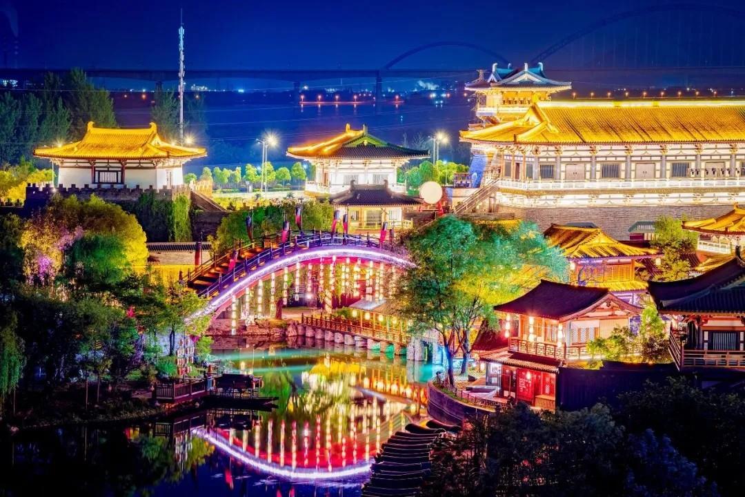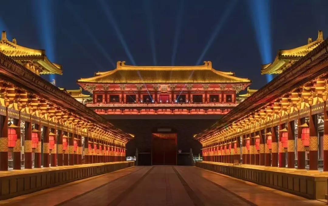 唐城依托襄阳2800年的历史底蕴,以盛唐文化为核心,按“八水绕长安”格局建造,拥有花萼相辉楼、明德门、朱雀廊、青龙寺、胡玉楼、宣政殿等标志性建筑群。