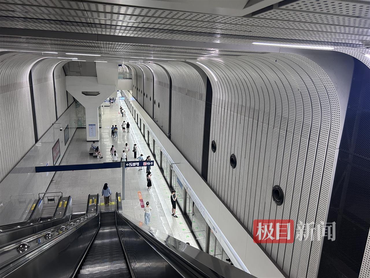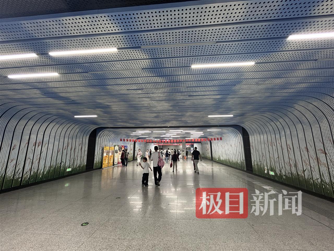值得注意的是,该站装修设计主题是“城市森林、湖光山色”,未来感十足,站内的蓝天白云和芦苇绵延,营造出了“风吹芦花飘,人在画中游”的视觉享受。