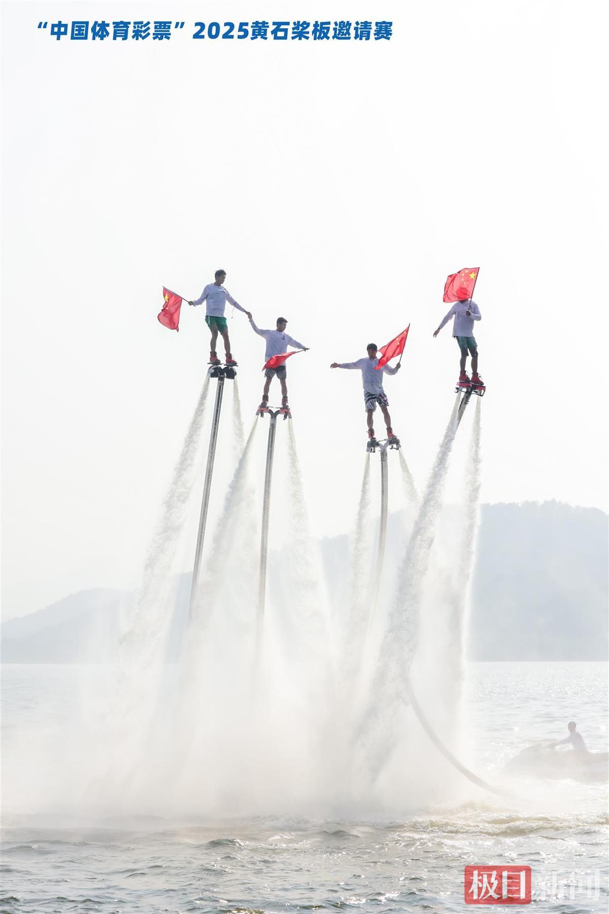10月5日上午,2025黄石桨板邀请赛在黄石市磁湖开幕,现场水上飞人、立式编队、空翻艇等多场精彩表演让旅客大饱眼福。来自国内外的500余名运动员齐聚黄石,开展一场挥桨竞速、浪涌磁湖的激情之旅。