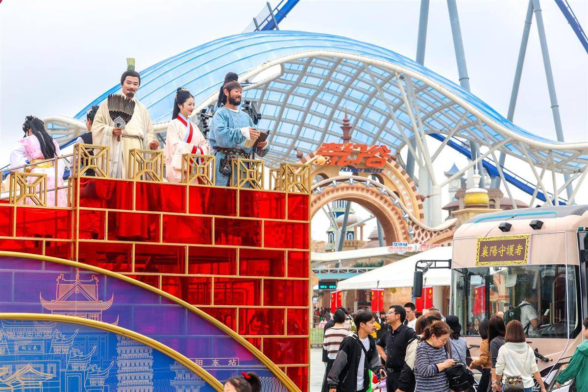 “侠义花车”亮相襄阳华侨城。(湖北日报通讯员 杨东 摄)