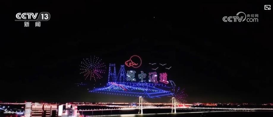 广东中山:千架无人机闪耀深中通道 中秋月下共绘湾区团圆