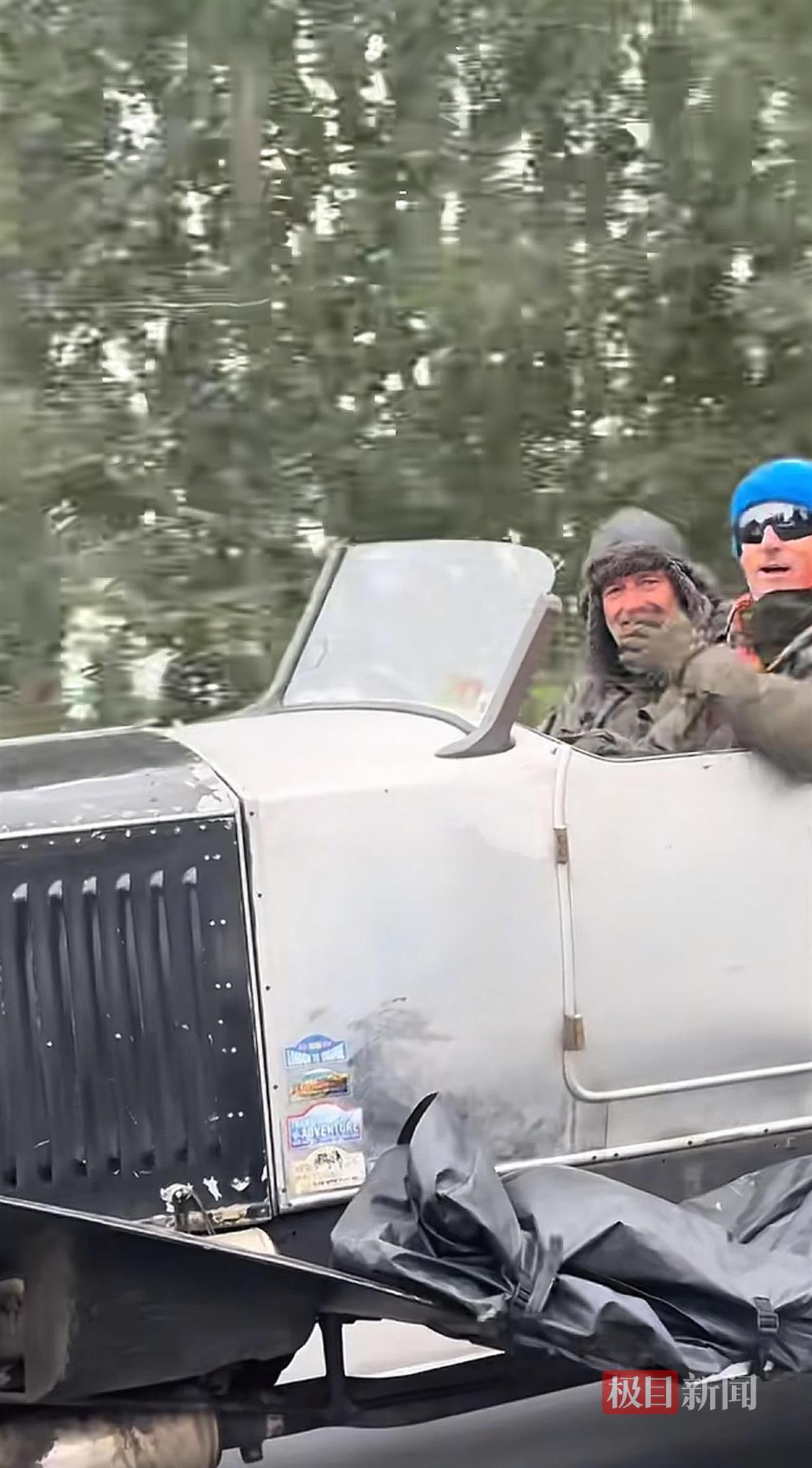 网友偶遇老外开老爷车行驶