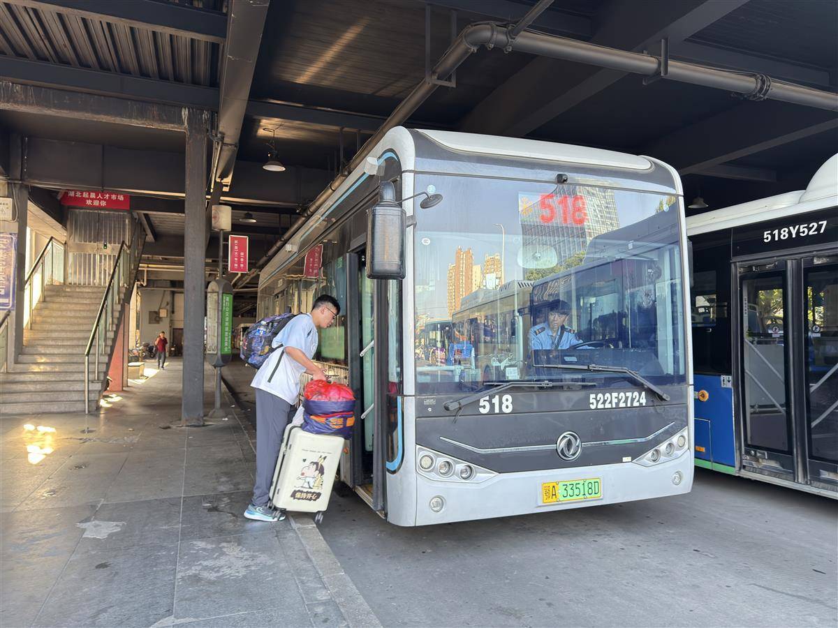 围绕藏龙岛、中州等大学城学子返程需求,公交部门采取“常规线路+定制公交”组合服务模式。758路、929路、905路等常规线路加大运力投放,同步加密发车频次;大学城定制公交则密切关注秀湖、佛祖岭、江夏客厅等地铁站客流变化,实时调整运力配置,实现公交与轨道交通“零距离换乘”。