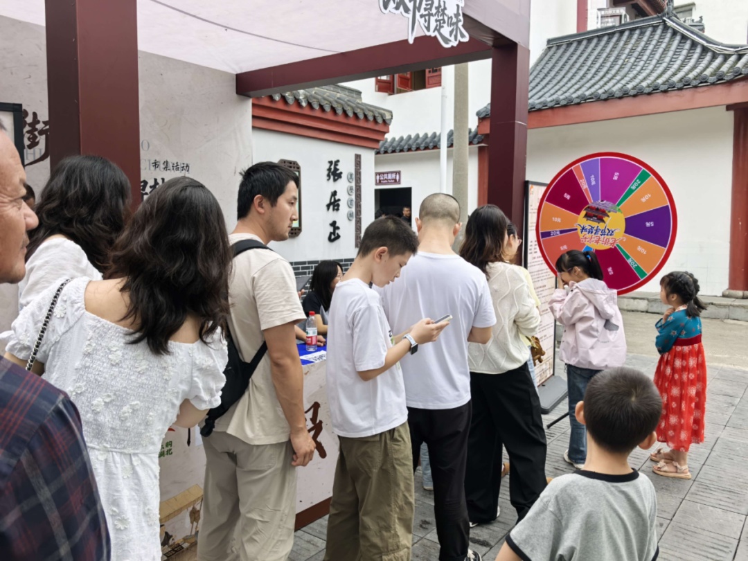 市集现场精彩纷呈,消费券小游戏区持续排起长龙,互动欢笑不断;NPC巡游队伍穿梭街区,与游客合影互动、派发好礼;刮刮乐抽奖环节惊喜不断,将现场气氛推向高潮。此外,活动推出的“五重福利”,包括“惠购湖北”消费券、市商务局发放现金消费券、农行立减金和商户让利酬宾叠加优惠,还有监利毛市佬面点免费送,不仅真正实现“优惠加码”,让市民游客畅享购物乐趣,更让大家在实惠中深度感受荆州老字号的品牌魅力与文化底蕴。
