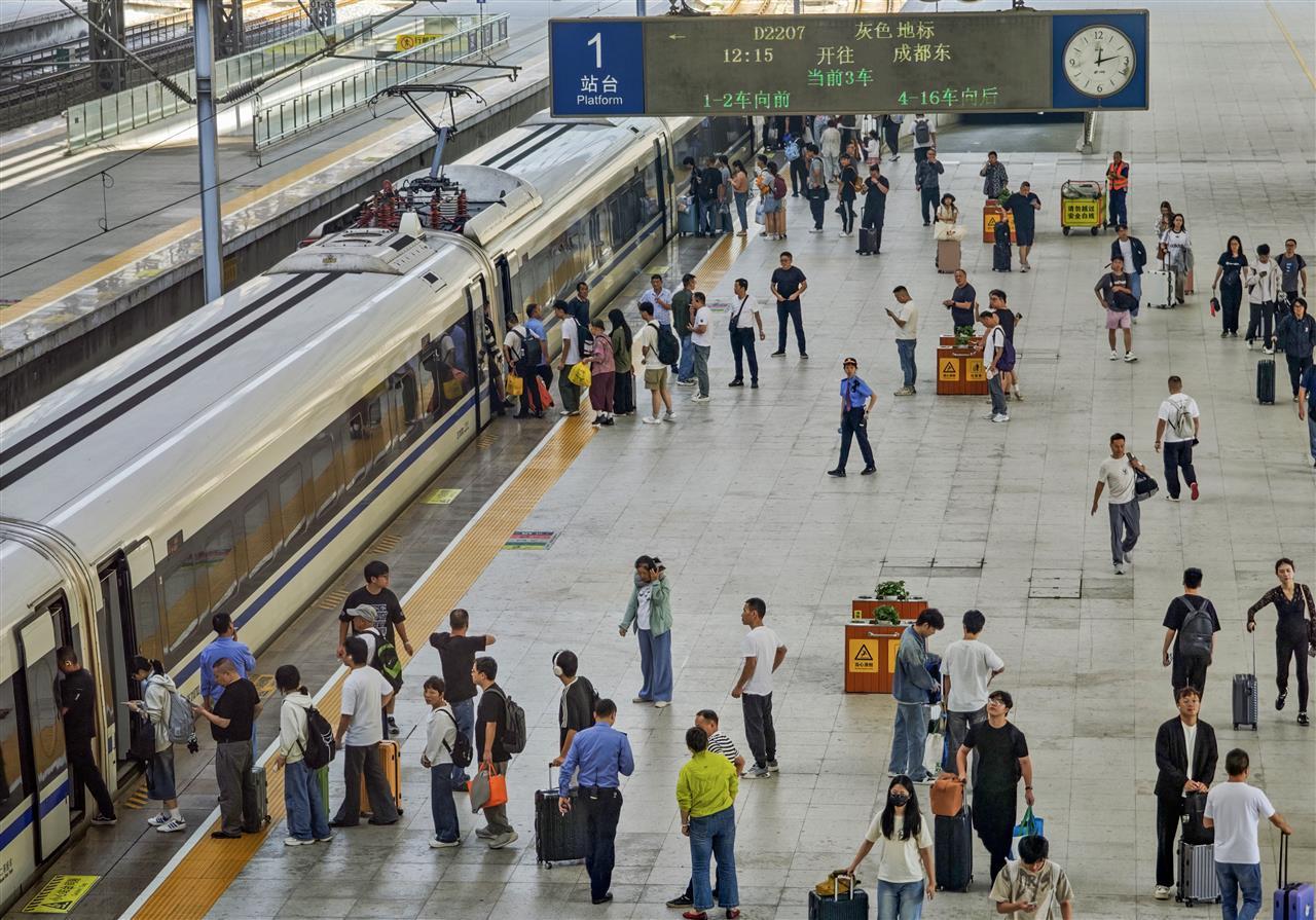 10月8日,记者从中国国家铁路集团有限公司获悉,当日,全国铁路迎来返程客流高峰,预计发送旅客2175万人次,计划加开旅客列车2189列。武汉铁路部门全力应对返程客流高峰,在热门方向和区间及时增加运力投放,采取加开临时旅客列车、优化进出站流程等措施,全力提升运输能力,保障旅客平安顺利返程。