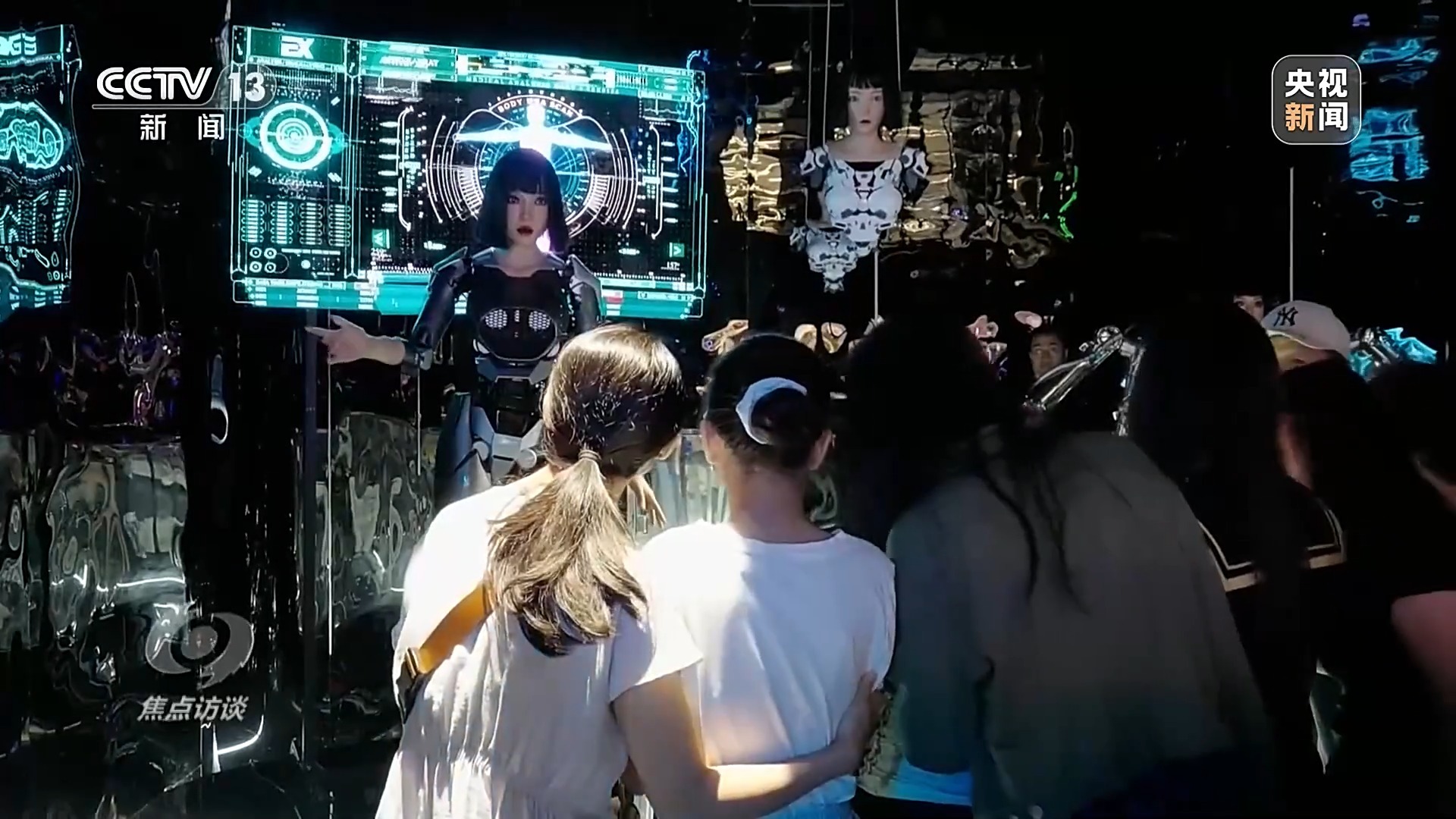 与仿生机器人互动,和科学家机器人聊聊天,再生成几张自己的AI动画照片,上海一家新开的机器人剧场全国首店聚拢起超高人气。