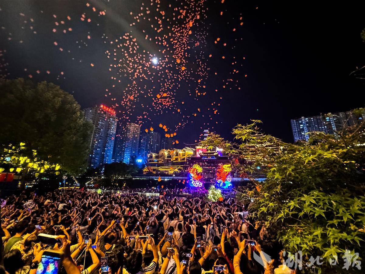 中秋夜宣恩游客共放电子孔明灯