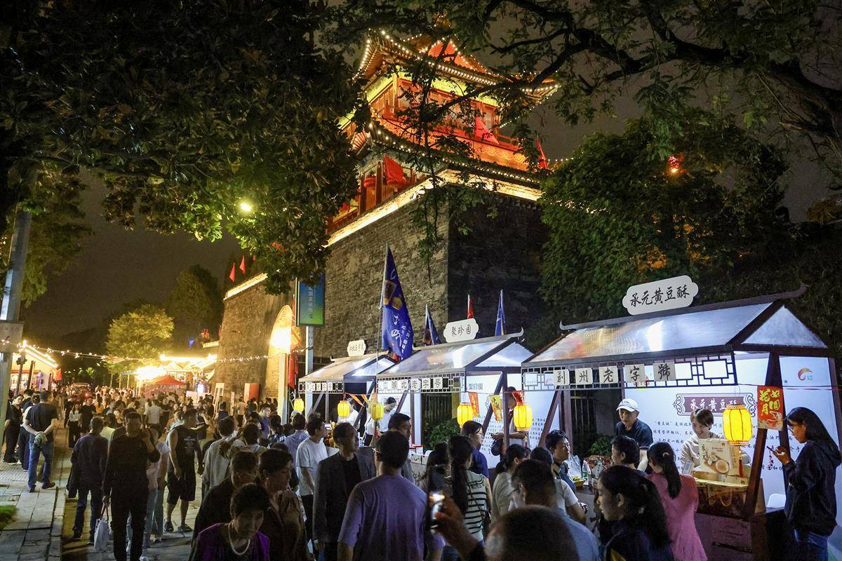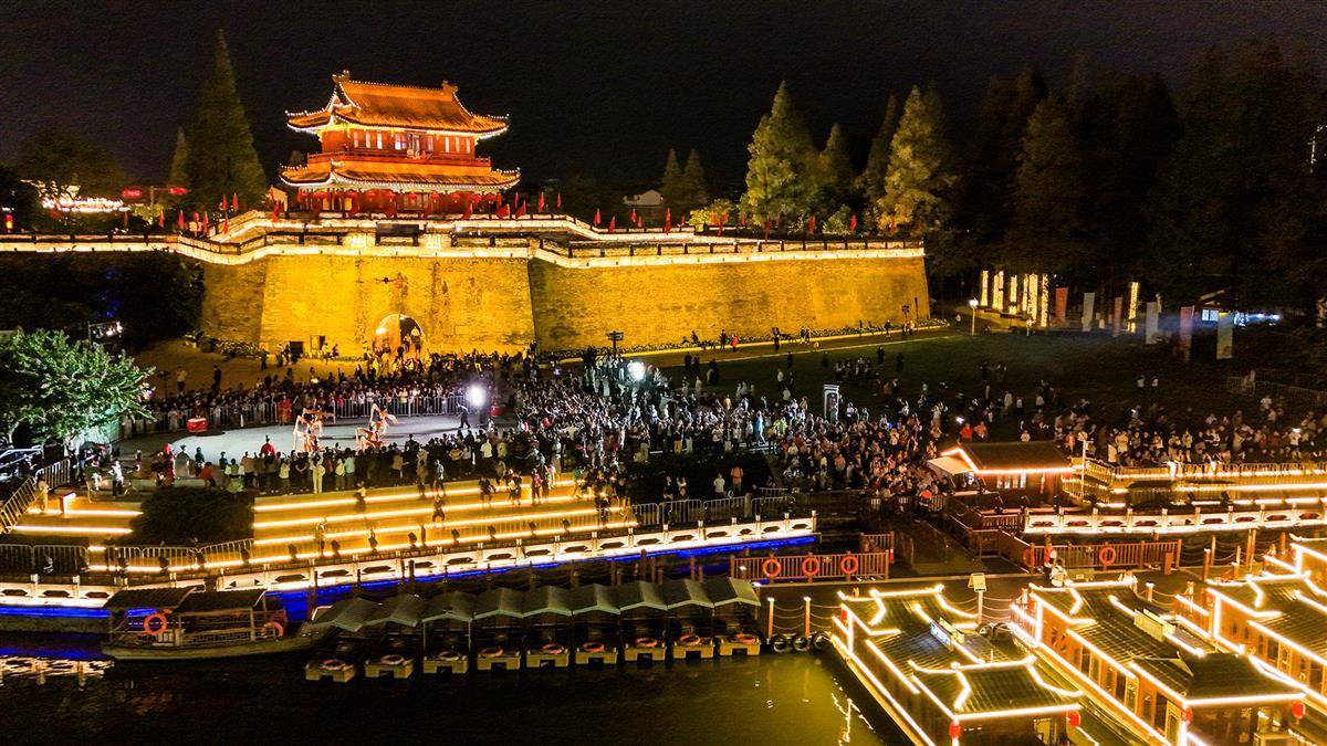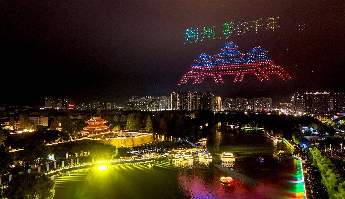 荆州专为国庆假期打造的“千年一城满风华”文旅项目,首次将古城东门、大北门、南门三大古城门串联成一条璀璨的文化廊道,游客在一步一景中从“看客”转变为“剧中人”。绚丽的灯光秀和无人机表演,让游客直呼“震撼”。
