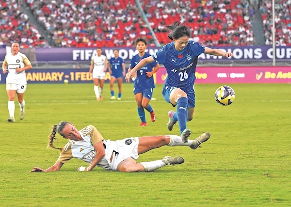 首届国际足联女足冠军杯预选轮8日在武汉体育中心打响。亚足联女足俱乐部冠军联赛新科冠军武汉车谷江大女足,以1:0力克大洋洲女足冠军联赛冠军奥克兰联,成功晋级下一轮。楚天都市报极目新闻记者肖颢摄