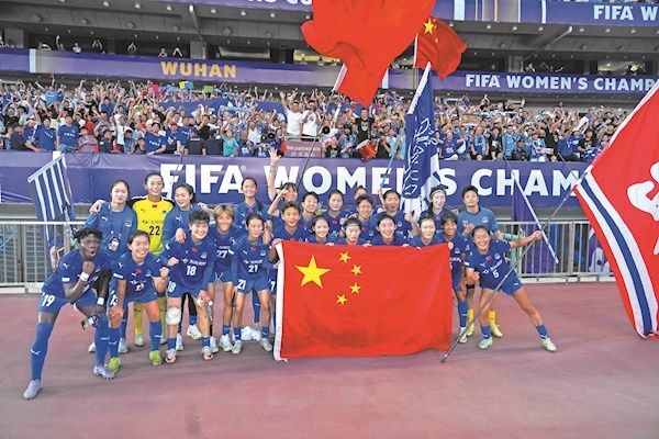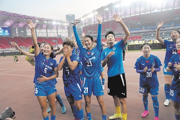 赢球后武汉女足队员向球迷致谢 楚天都市报极目新闻记者肖颢摄