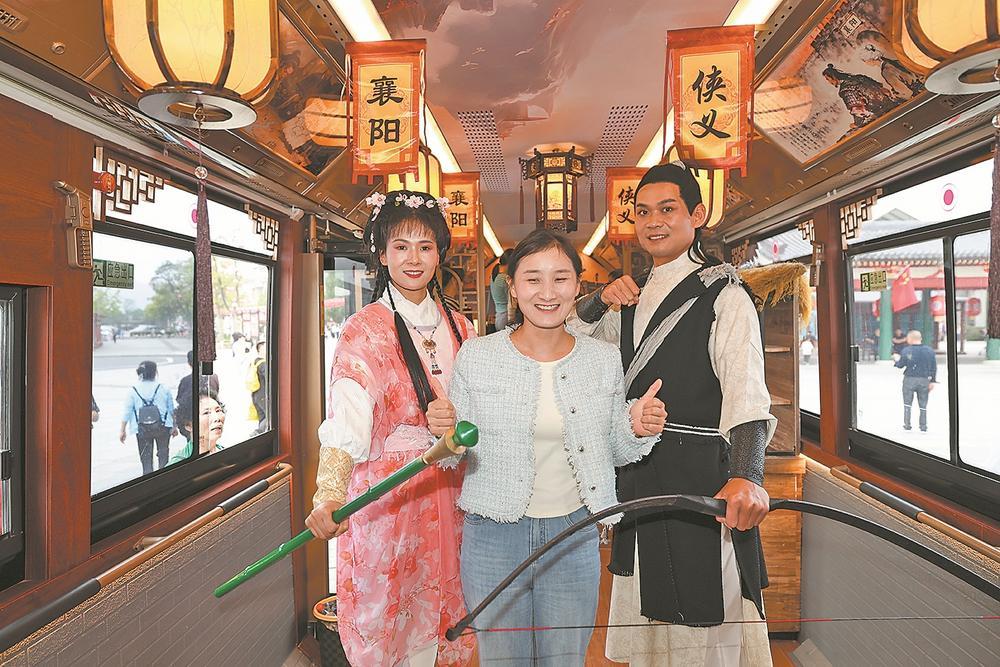 为了让更多游客能与这台旅游公交车近距离接触,10月5日至7日,“侠义襄阳”旅游公交车进行了线路调整,与在2025“河山添锦绣”武汉文旅IP城市大巡游活动中大放异彩的襄阳花车同行,在华侨城、唐城、古隆中等核心景区巡游,与游客互动;10月8日,“侠义襄阳”旅游公交车还现身国潮音乐嘉年华襄阳站现场,为各地乐迷提供一个新奇有趣的“移动打卡点”。