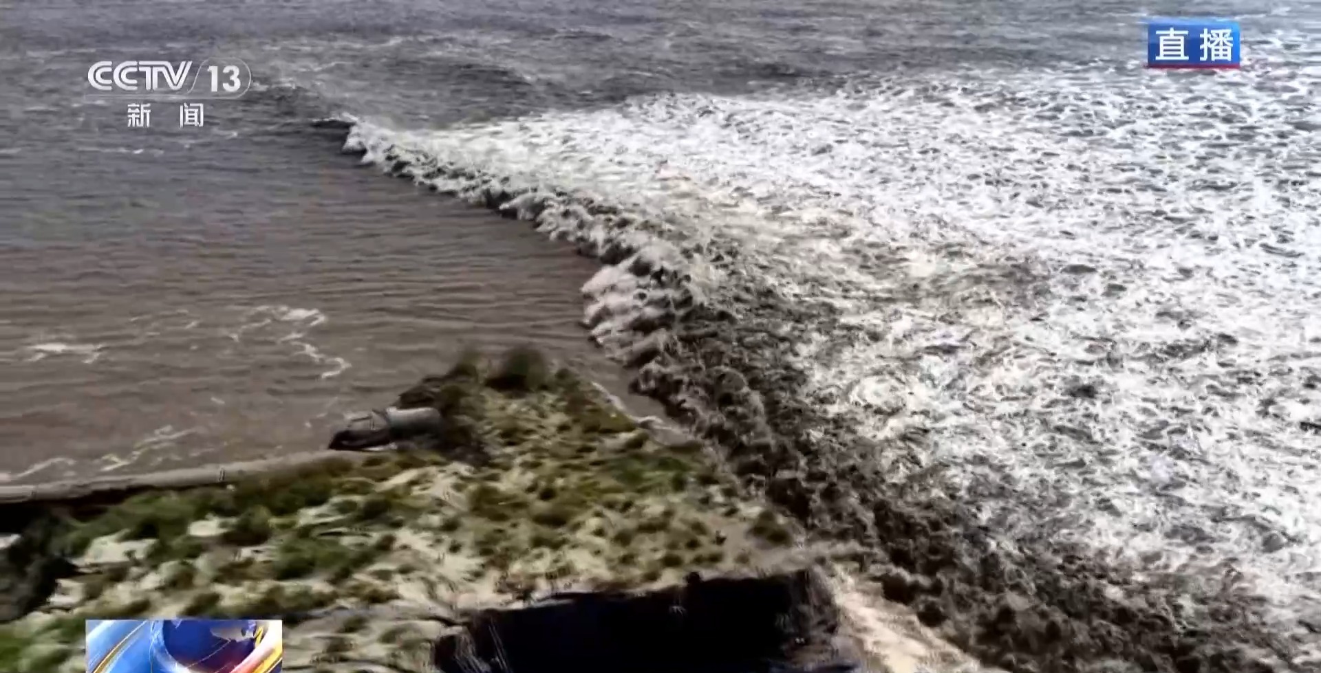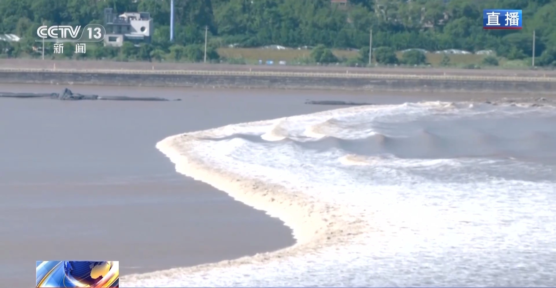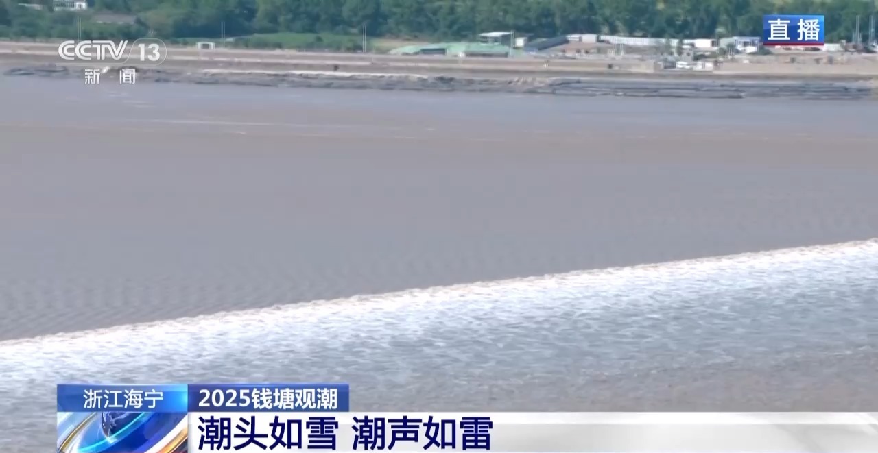 总台记者 彭雨佳:我现在所在的位置是钱塘江的老盐仓大坝。今天是八月十八,潮水和前几天相比变得更大、更猛。潮水奔涌到这里,可以说是在一路蓄力,等待着抵达老盐仓时的爆发。此刻,在我身后江面的水位并不高,还能看到裸露的泥沙,现场也比较安静。但是过一会儿,这里就会发生明显的变化。