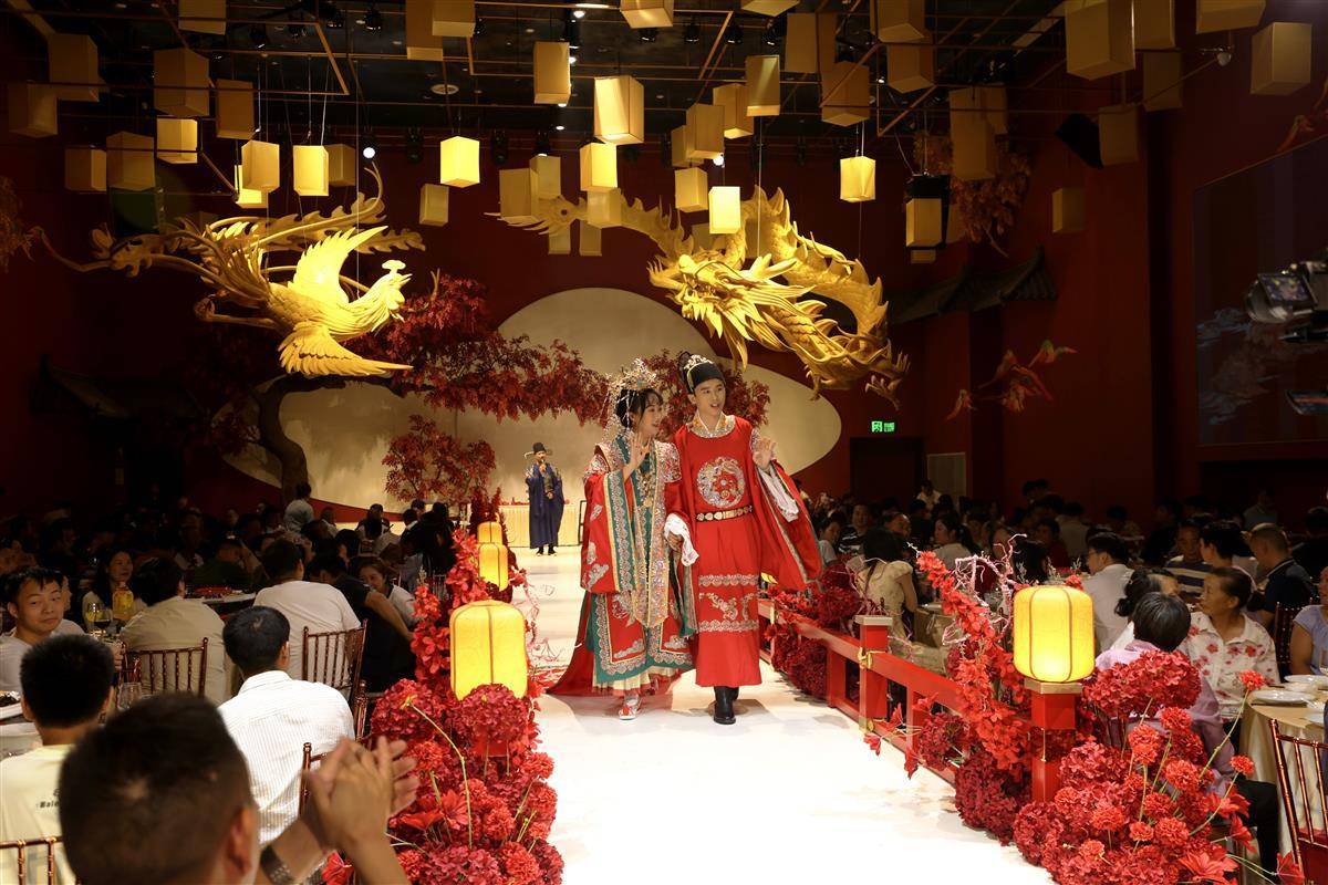 10月1日的大冶市天鹅礼宴中心,挂满红绸的大厅弥漫着桂花香。藏族姑娘索朗卓嘎戴上凤冠,穿上绣有并蒂莲裙摆的凤冠霞帔,眼里满是欢喜。“以前总听长辈说‘缘分天定’,而我的缘分是‘岗位’牵来的。”她笑着转头,正好对上一旁的新郎郑自国的目光。