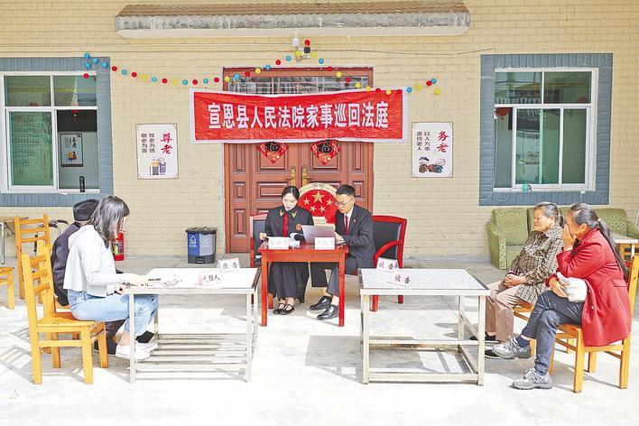 今年5月,宣恩县法院法官走进养老院审理一起赡养纠纷案。 (湖北日报通讯员 田家宁 摄)