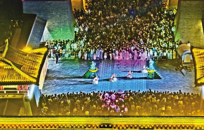 人山人海!襄阳唐城景区10月5日夜游盛况。当晚,来自河南、湖南及省内周边城市的游客占比超六成。(湖北日报全媒记者 刘曙松 通讯员 王虎 摄)