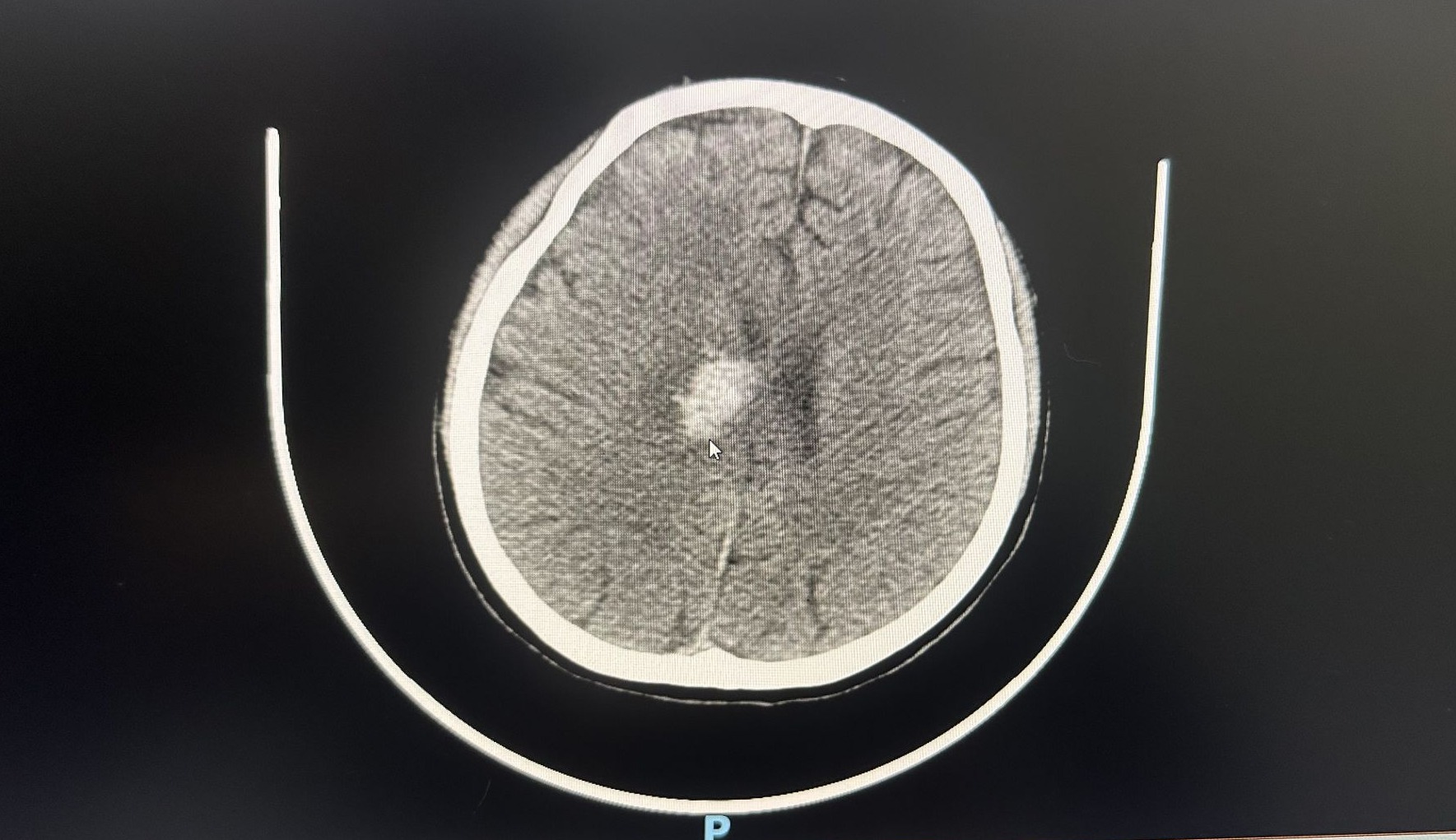 患者脑出血的CT影像,白色为出血区域。