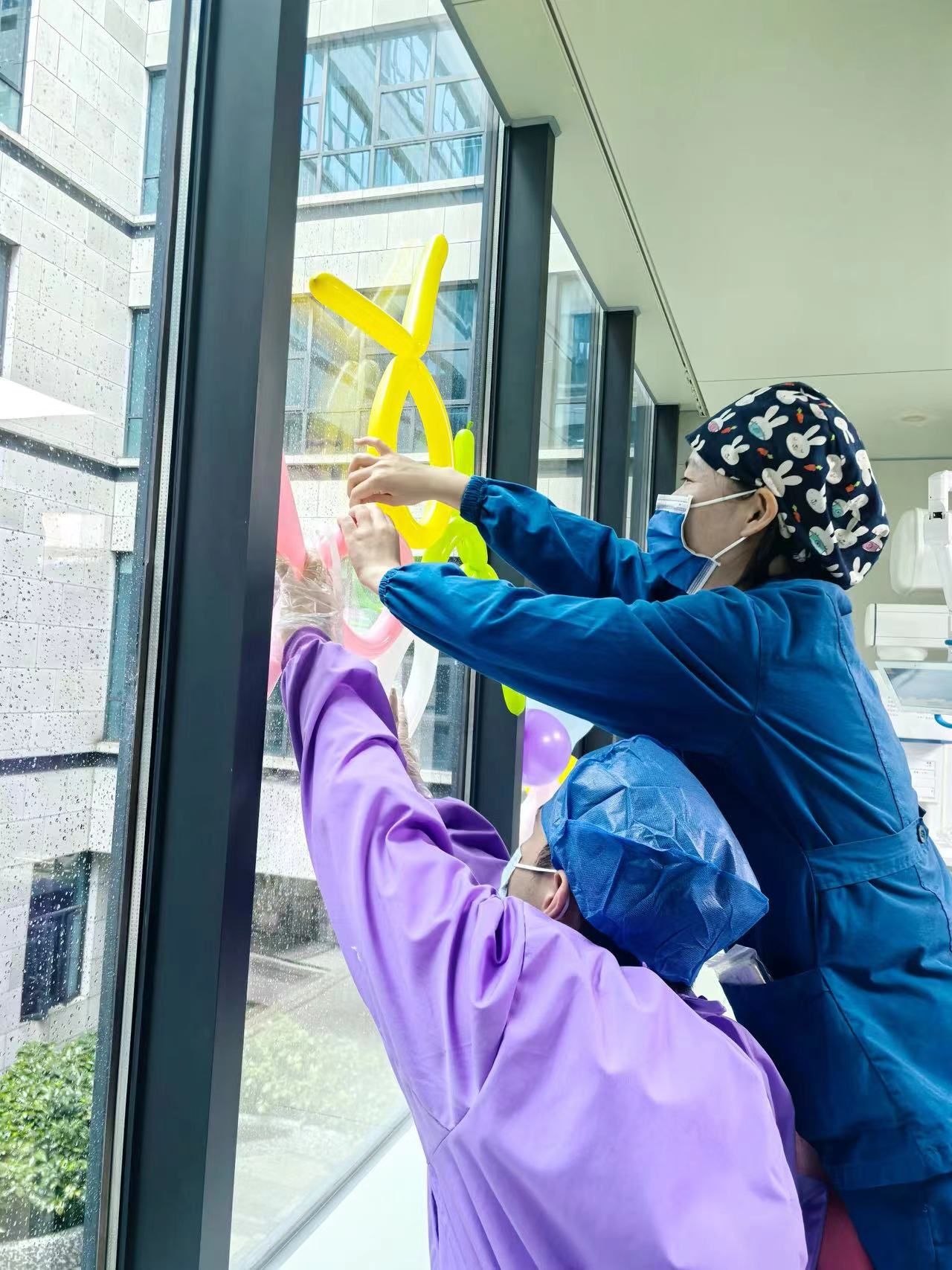 医护人员在布置温馨病房。