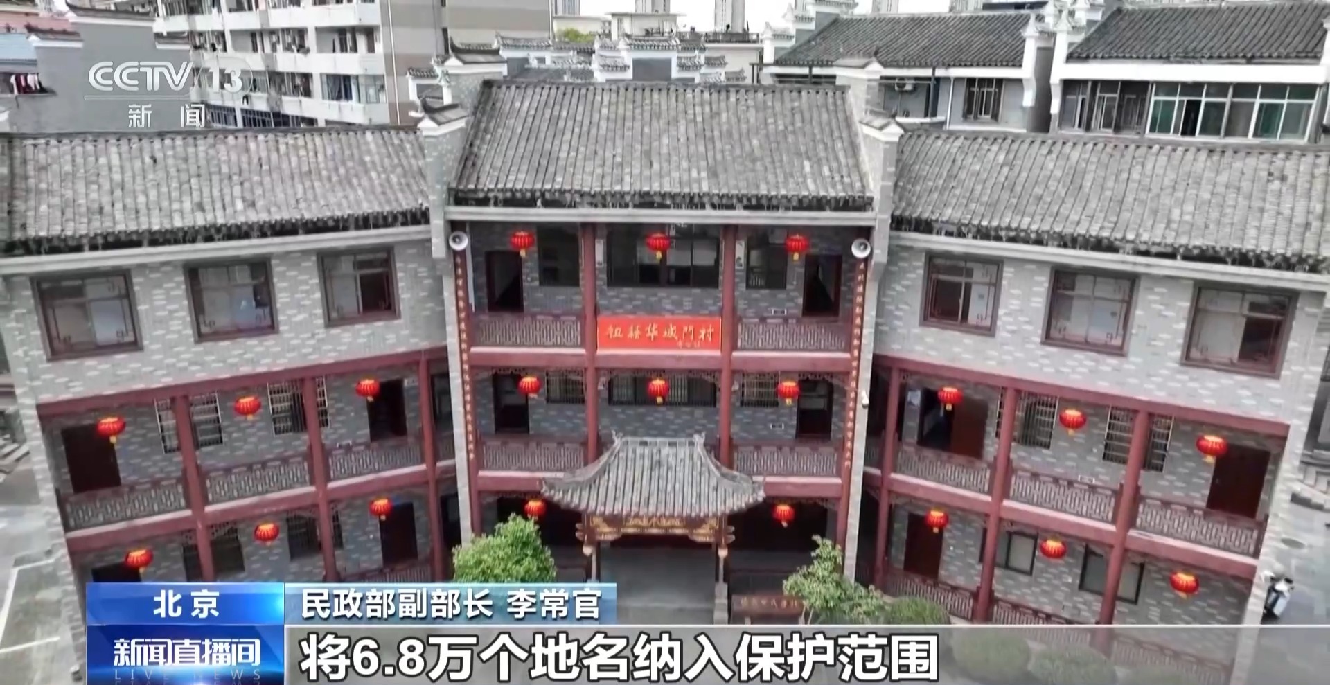 民政部副部长 李常官:健全完善地名文化遗产评价体系,充分挖掘千年古地名的文化内涵,打开中华地名文化记忆。建立地名保护名录制度,做好“千年古县”“千年古镇”“千年古村落”等的地名文化遗产保护工作,不随意更改老地名,将6.8万个地名纳入保护范围。