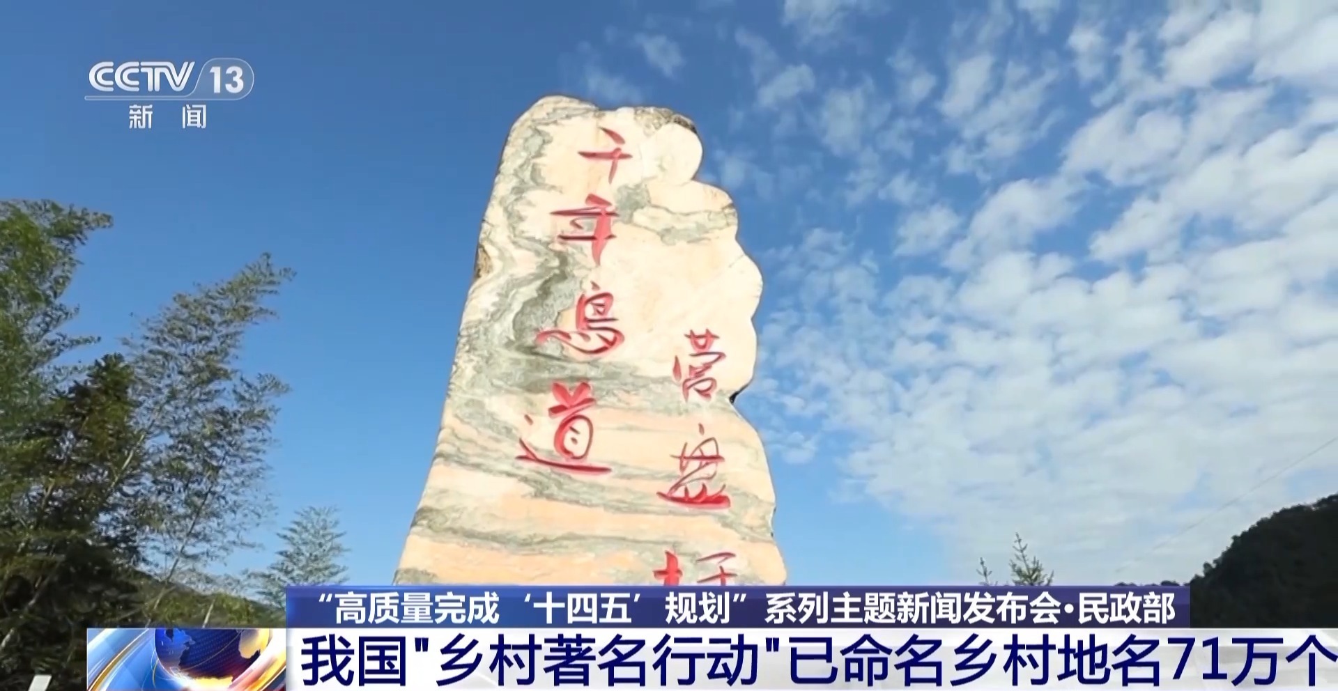地名是社会基本公共服务信息。记者从国新办今天举行的“高质量完成‘十四五’规划”系列主题新闻发布会上获悉,“十四五”期间,我国开通上线中国·国家地名信息库,深入开展“乡村著名行动”,新命名乡村地名71万条,有效服务百姓出行、乡村振兴。